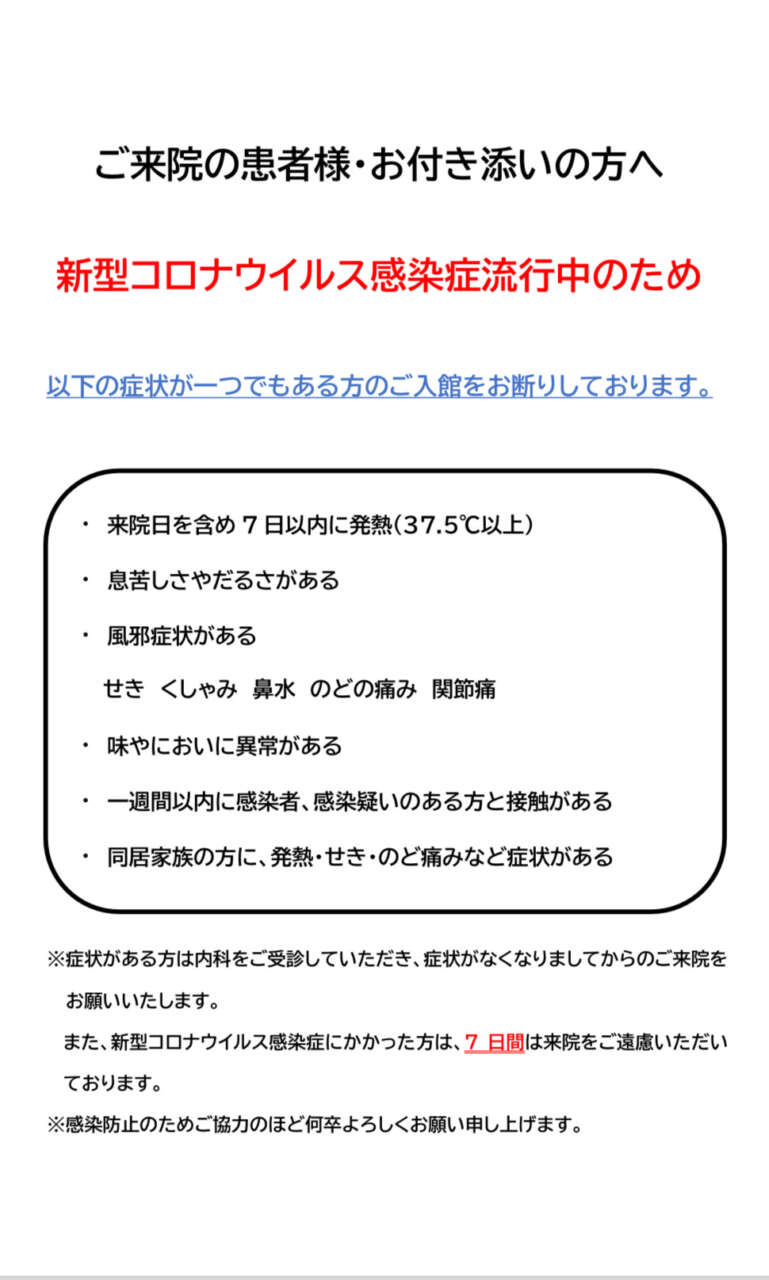 ご来院の患者様・お付き添いの方へ健康チェックのお願い