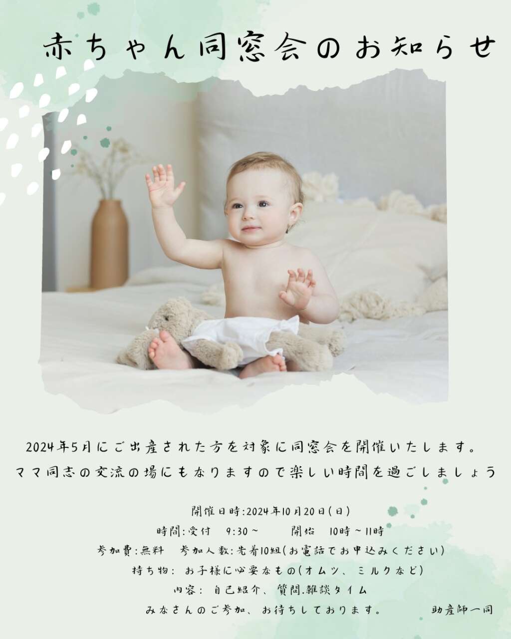 2024年5月にご出産された方を対象に同窓会を開催いたします。