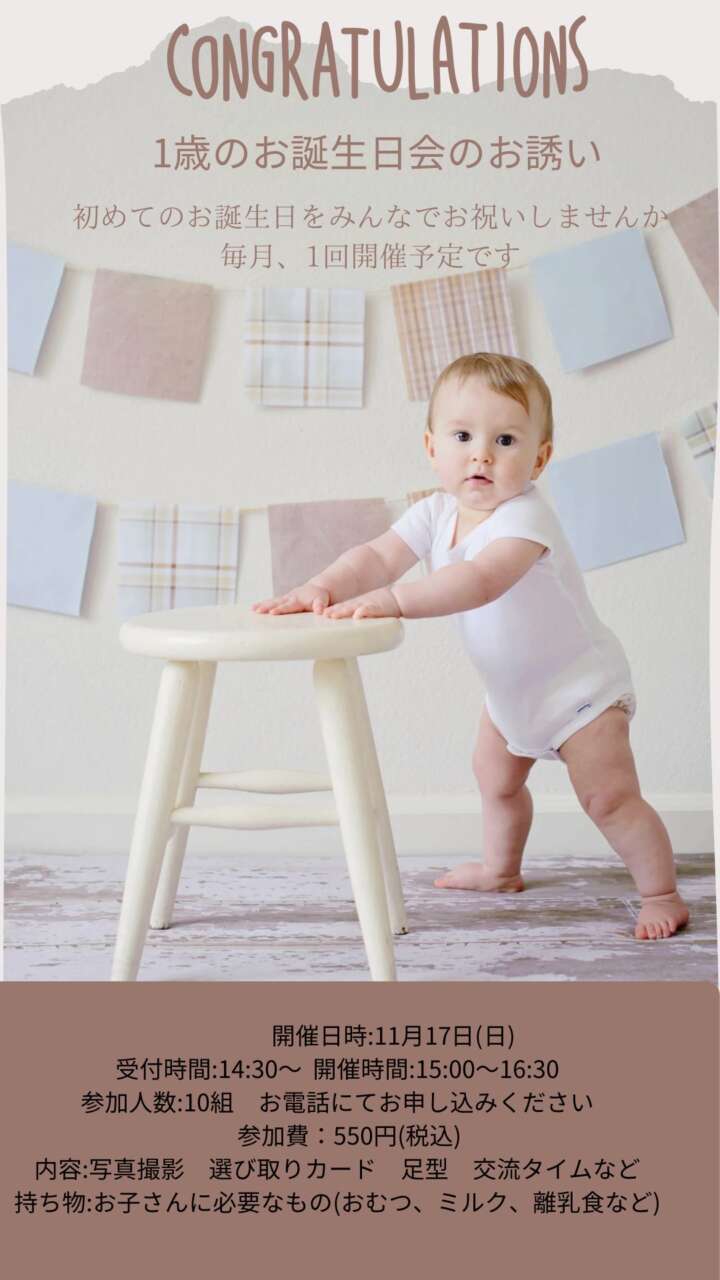 1歳のお誕生日会11月17日(日)開催のご案内
