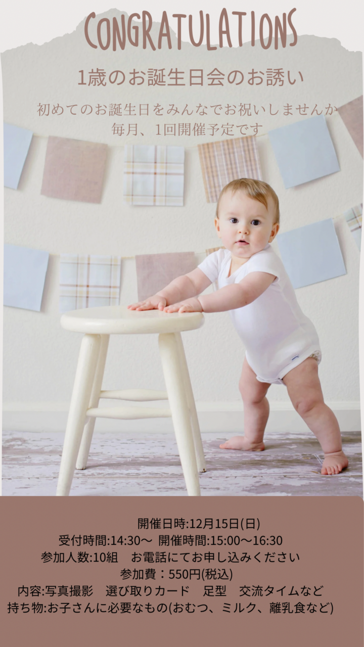 1歳のお誕生日会12月15日(日)開催のご案内